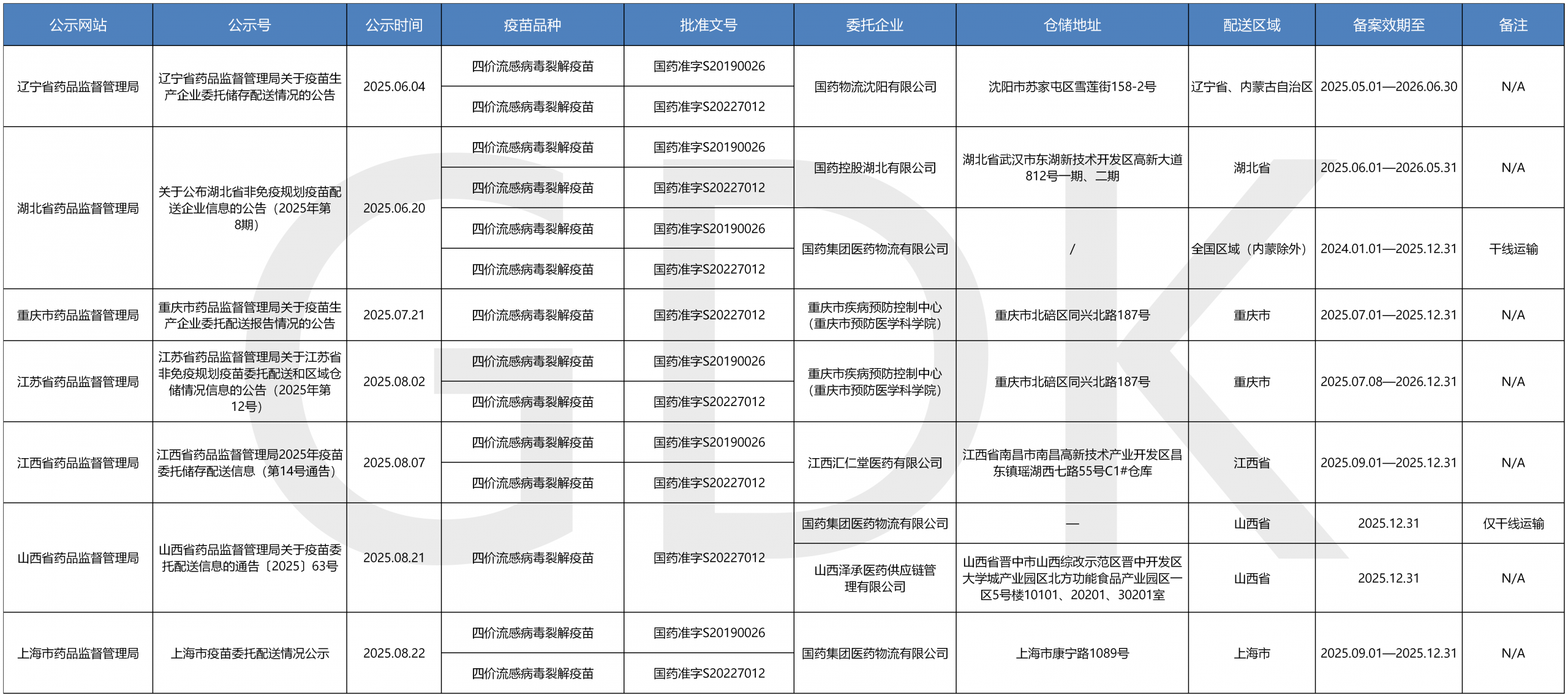 疫苗委托冷鏈儲(chǔ)存、配送企業(yè)信息公開